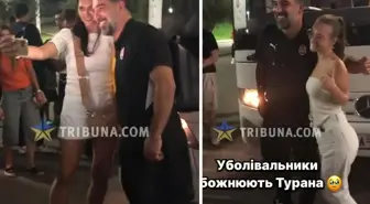 Genç Ukraynalı hayranları, Turan’la fotoğraf çekilmek isterken ünlü isim bu talebi kırmayarak kameralara poz verdi. Ancak Turan, bu sefer de karşı cins bir hayranıyla temas kurmadan sarılmasıyla dikkatleri üzerine çekti.