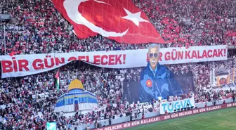 TÜGVA Yaz Okulları Final Programı için Tüpraş Stadyumu’nda gençlerle bir araya gelen Cumhurbaşkanı Recep Tayyip Erdoğan’a özel bir koreografiyle sürpriz yapıldı. Cumhurbaşkanı Erdoğan’ın bir yanında Ayasofya-i Kebir Camii, diğer yanında da Mescid-i Aksa ile resmedildiği koreografide yer alan “Bir gün gelecek, bir gün kalacak” ifadeleri dikkat çekti.