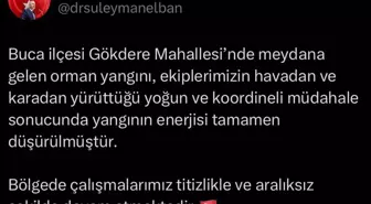 İzmir Valisi Süleyman Elban, yangınla ilgili sosyal medya hesabından açıklama yaptı. Vali Elban paylaşımında, “Buca ilçesi Gökdere Mahallesinde çıkan orman yangınının, ekiplerimizin havadan ve karadan yürüttüğü yoğun ve koordineli müdahalesi sonucunda enerjisi tamamen düşürülmüştür. Bölgede çalışmalarımız titizlikle ve aralıksız şekilde devam etmektedir” ifadelerine yer verdi.
