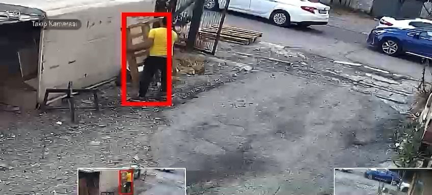 Şüpheli, önce mağazaya ait arazideki üç paleti dışarı taşıdı. Ardından yakındaki bir el arabasını alarak geri dönüp iki paleti daha yükleyip çaldı. Paletlerin eksik olduğu fark edilince güvenlik kameraları incelendi ve hırsızlık anları kaydedildi.