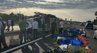 Öner Taştekin’in kullandığı 59 ABL 537 plakalı sebze yüklü kamyon Yeniçiftlik Mahallesi’nde sürücüsünün direksiyon hakimiyetini kaybetmesi sonucu bariyerlere çarparak devrildi.