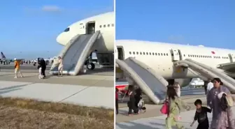 Uçak, Antalya Havalimanı’na iner inmez yolcularını acil tahliye etti. Yolcuların, acil tahliye kaydırağından uçağı terk ettiği görüldü.